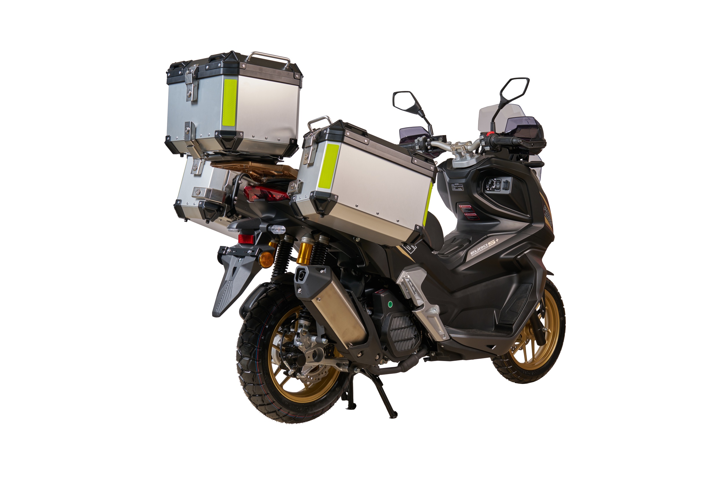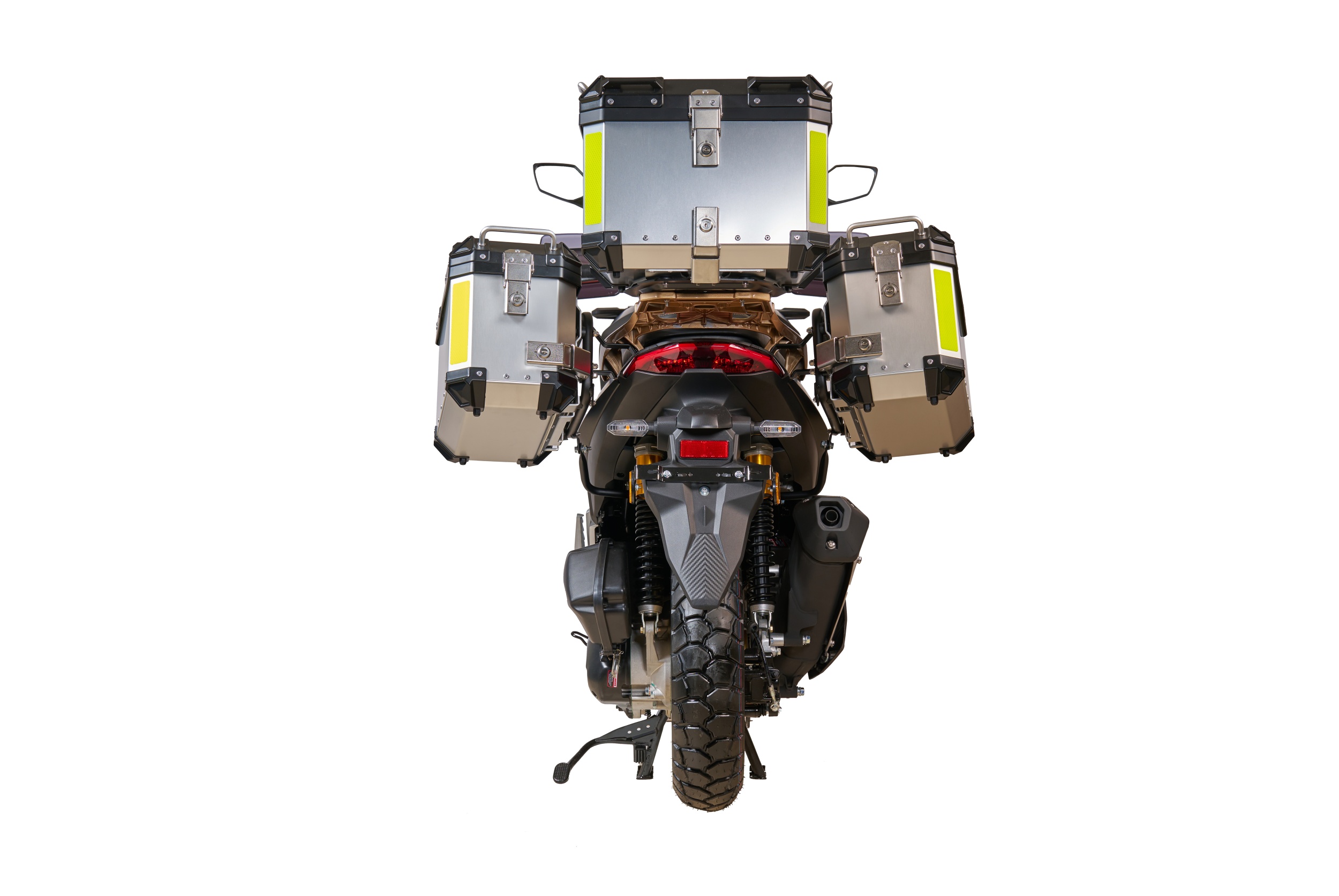 KOMPLETNÍ SADA KUFRŮ obsahuje levý, pravý a zadní box a držáky pro jejich upevnění.