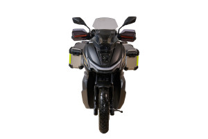 S namontovanou kompletní sadou jsou rozměry motocyklu 2150 x 1040 x 1280 mm (délka x šířka x výška)