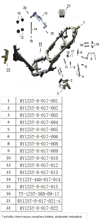 F17 rám, stupačky, stojany