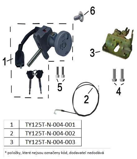 F4 spínací skříňka, zámek sedadla, bowden sedadla
