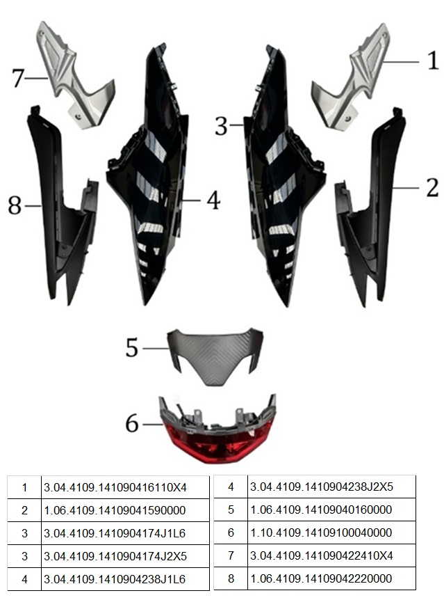 F7 podsedlové kryty, zadní světlo